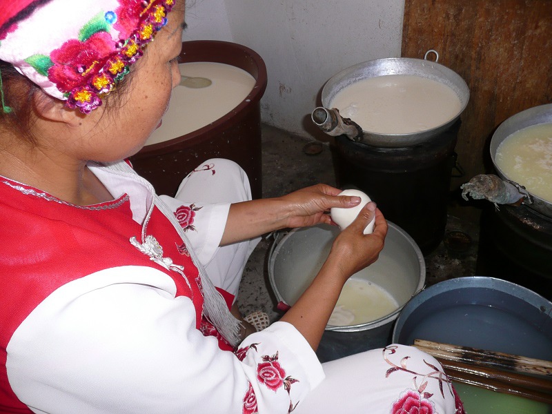 既然来源于蒙古传统,那大理的乳制品——乳饼和乳扇,也带上了游牧民族的色彩。我们来到了当地白族居民家中,了解乳扇的制作过程采集发酵样本。